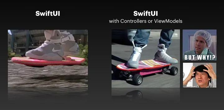 SwftUI로 돌아오면 나 역시도 SwiftUI에서 ViewModel 객체를 두고 그대로 바인딩해서 추상화시키는것은 회의적이다. 결국 바뀌는 값들을 알려면 @Binding 값을 어딘가에서 Combine으로 구독하거나 onChange를 붙여야 하는데, Combine을 사용한다면 뷰 바인딩을 어디서 관리할 것이며, onChanged를 붙인다면 화면이 복잡해지면 복잡해질수록 onChanged투성이가 될 것이다.